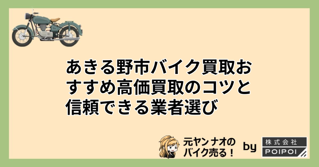 【高価買取!】あきる野市でバイクを高く売りたいあなたへ。バイク買取出張査定なら家にいながらバイクを高く売ることができます。このサイトではあなたのバイクが高く売れる買取店をランキング形式でご紹介しています。