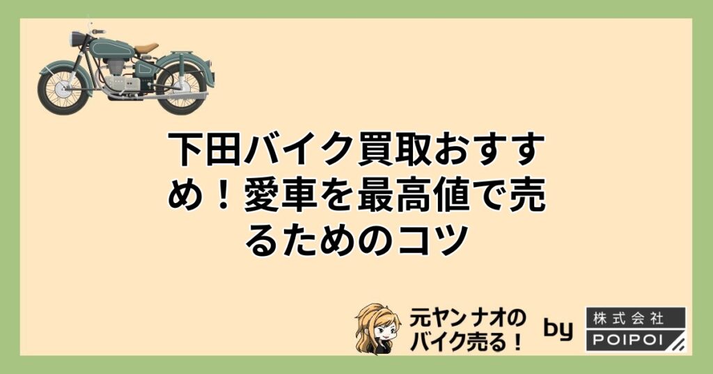 【高価買取!】下田市でバイクを高く売りたいあなたへ。バイク買取出張査定なら家にいながらバイクを高く売ることができます。このサイトではあなたのバイクが高く売れる買取店をランキング形式でご紹介しています。