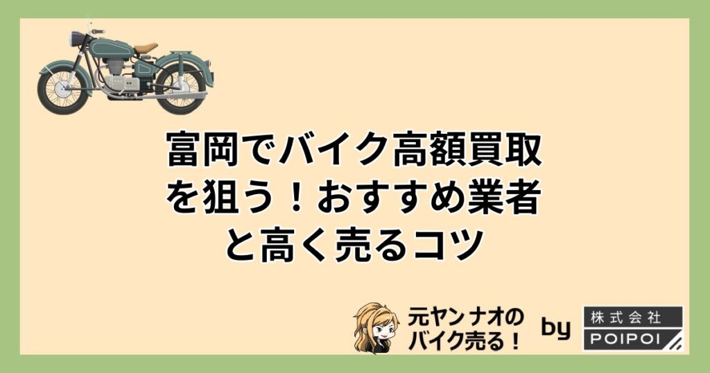 【高価買取!】富岡市でバイクを高く売りたいあなたへ。バイク買取出張査定なら家にいながらバイクを高く売ることができます。このサイトではあなたのバイクが高く売れる買取店をランキング形式でご紹介しています。