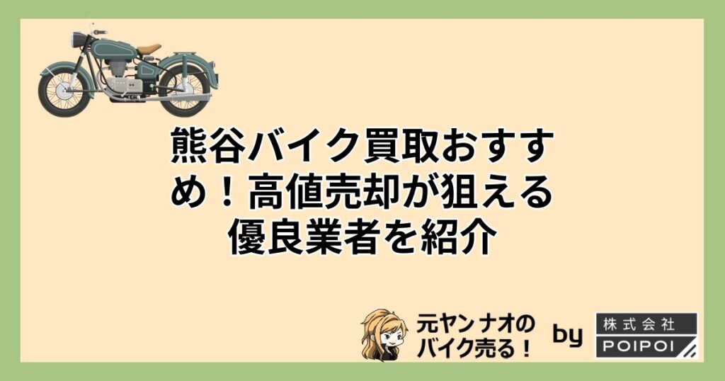 【高価買取!】熊谷市でバイクを高く売りたいあなたへ。バイク買取出張査定なら家にいながらバイクを高く売ることができます。このサイトではあなたのバイクが高く売れる買取店をランキング形式でご紹介しています。