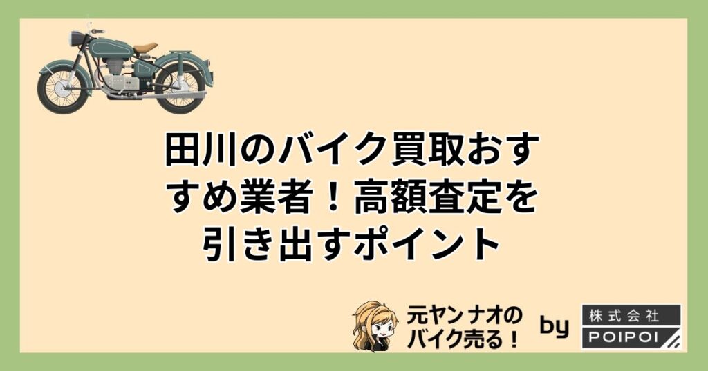 【高価買取!】田川市でバイクを高く売りたいあなたへ。バイク買取出張査定なら家にいながらバイクを高く売ることができます。このサイトではあなたのバイクが高く売れる買取店をランキング形式でご紹介しています。
