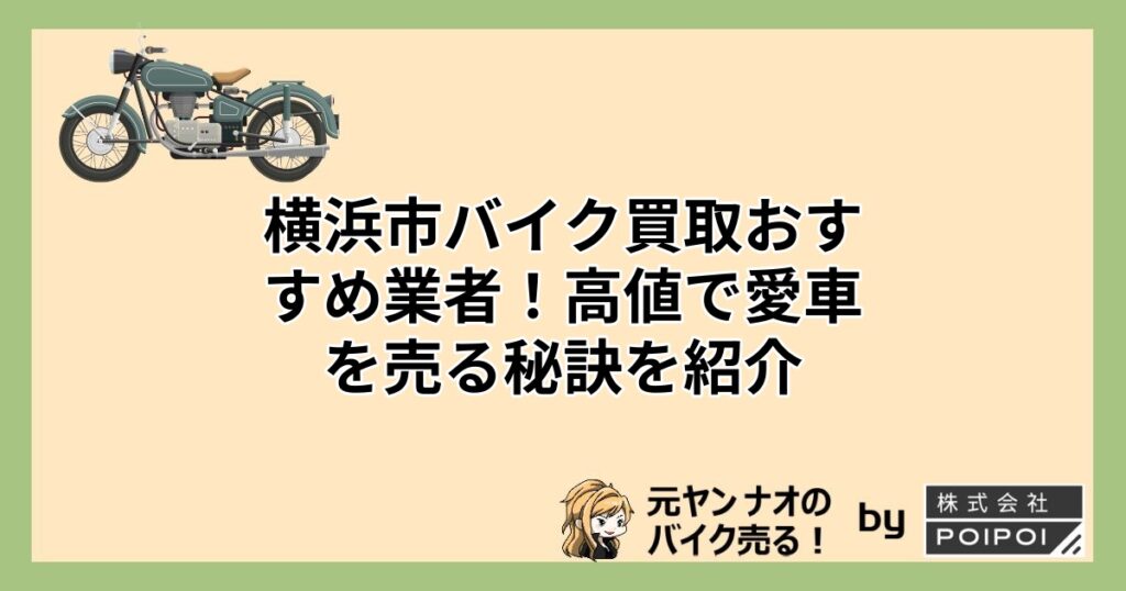 【高価買取!】横浜市でバイクを高く売りたいあなたへ。バイク買取出張査定なら家にいながらバイクを高く売ることができます。このサイトではあなたのバイクが高く売れる買取店をランキング形式でご紹介しています。
