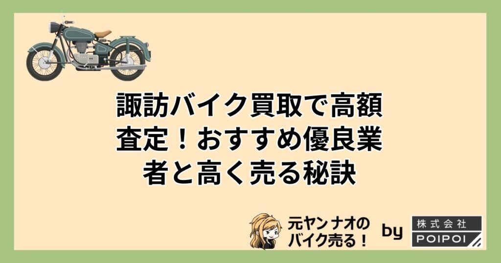 【高価買取!】諏訪市でバイクを高く売りたいあなたへ。バイク買取出張査定なら家にいながらバイクを高く売ることができます。このサイトではあなたのバイクが高く売れる買取店をランキング形式でご紹介しています。