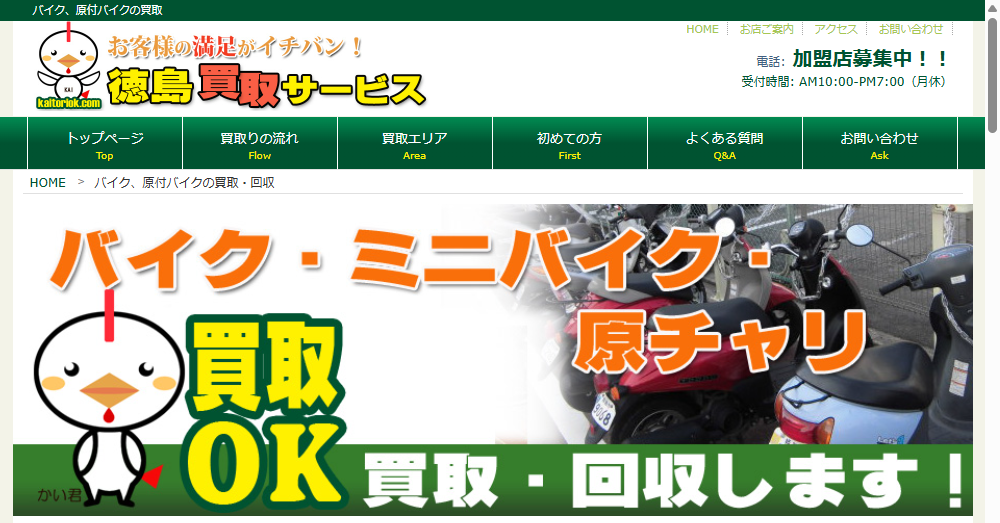 徳島買取サービスは徳島県徳島市に位置するバイクと原付バイクの買取・回収専門店です。