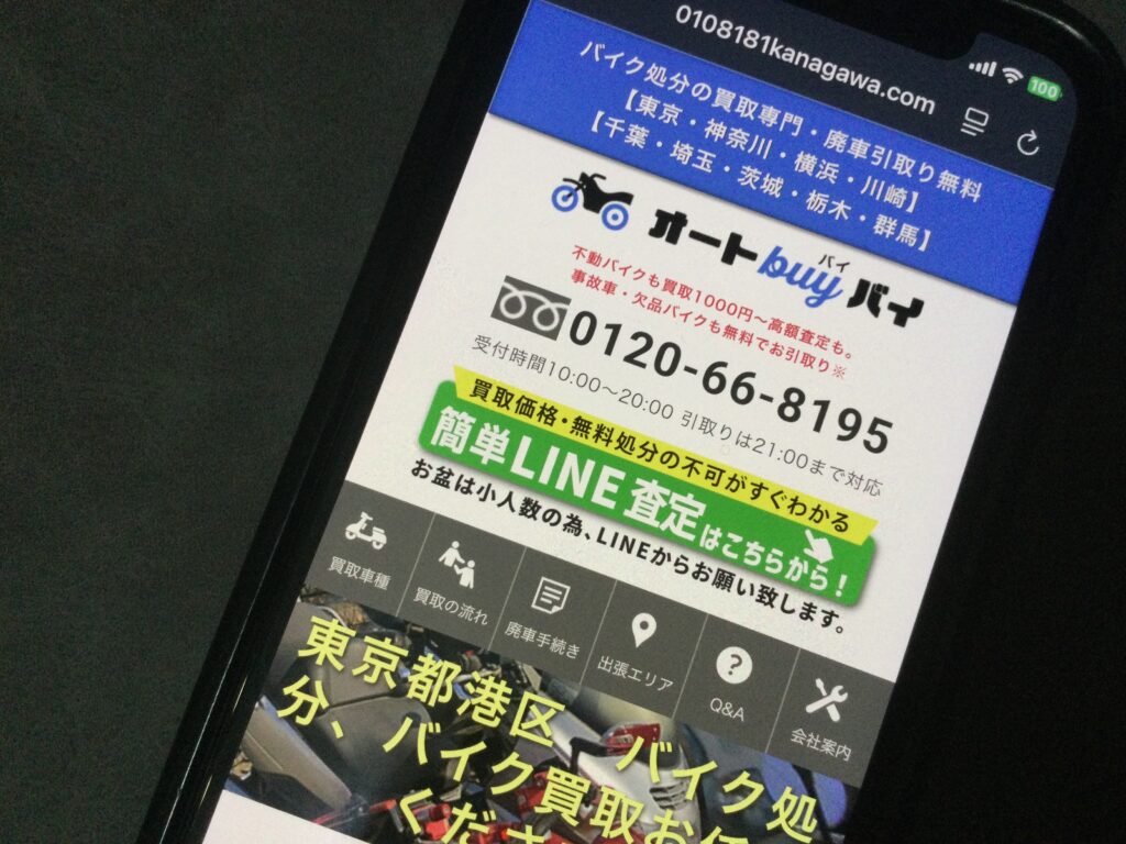 - 埼玉県新座市を拠点に、東京・神奈川での無料出張査定を実施し、事故車や不動車も高価買取。お客様のバイクを誠実に評価します。