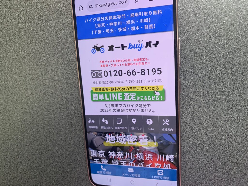 株式会社1plus1が運営する「オートバイバイ」は、東京・神奈川・千葉・埼玉を中心にバイク処分と買取を専門とする企業です。