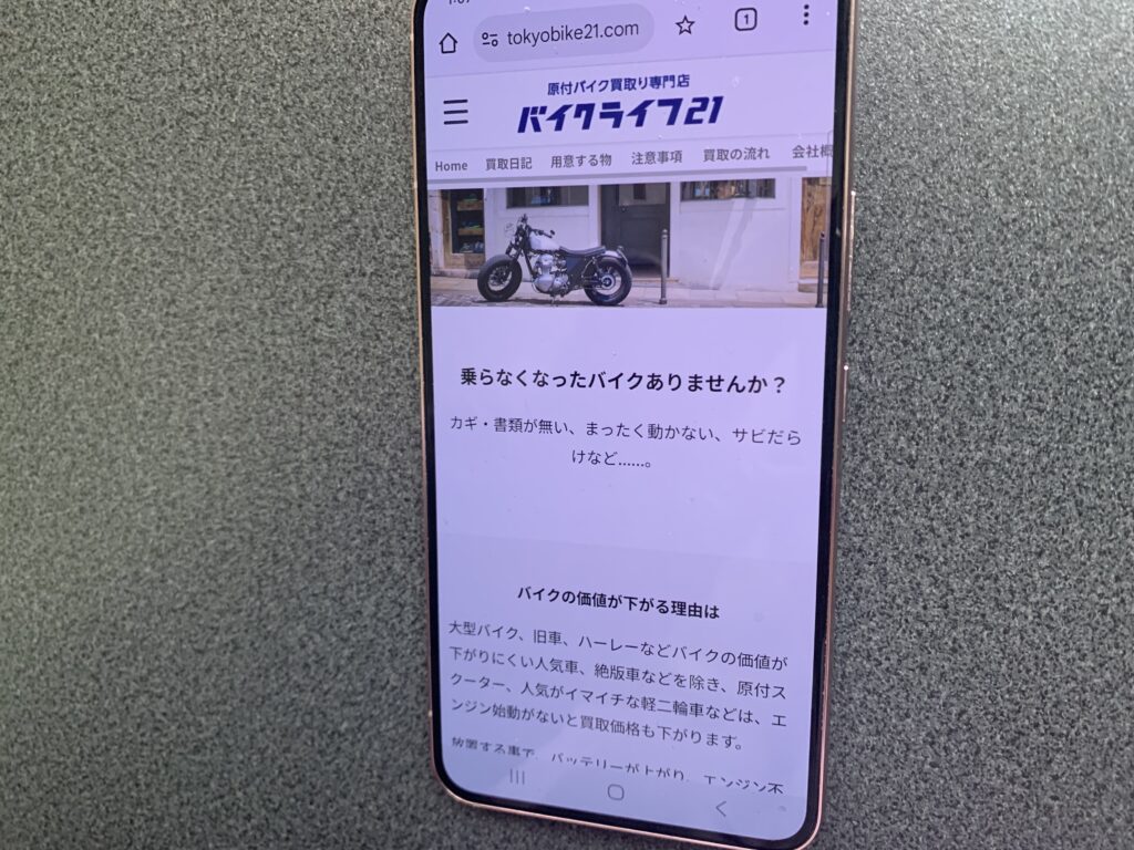 特に、放置されたバイクの価値が下がる前に売却することを推奨しており、動かないバイクでも買取対応が可能です。
