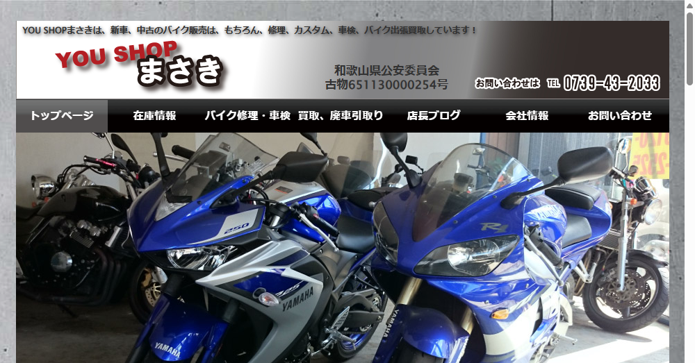 YOU SHOPまさきは和歌山県白浜に位置するバイク専門店で新車・中古バイクの販売、修理、カスタム、車検、出張買取など多岐にわたるサービスを提供しています。