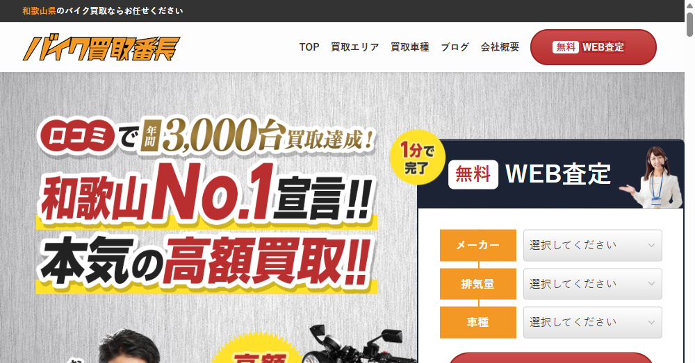 - 年間3000台以上の買取実績を誇るバイク買取番長は、和歌山県内での高額査定を実現し、他店で断られたバイクも買取可能です。