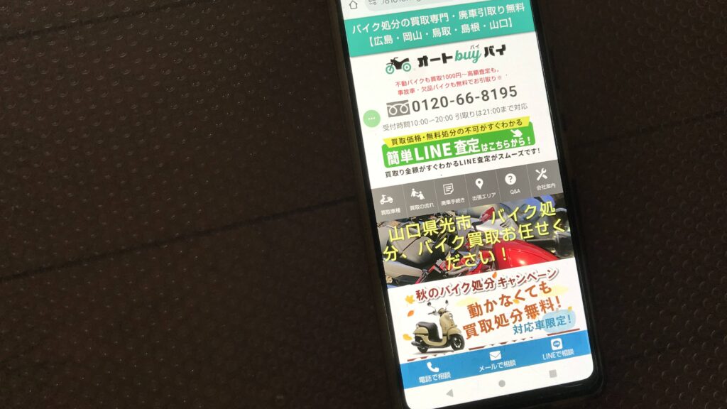 株式会社1plus1が運営するオートバイバイは、山口県光市を拠点にバイク処分と買取を専門とする企業で、創業20年以上の実績を持ち、広島・岡山・鳥取・島根・山口エリアでサービスを展開しています。