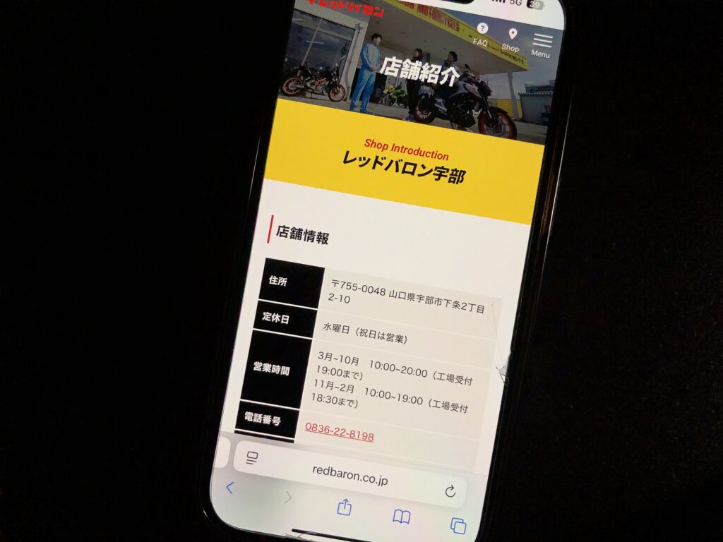 レッドバロン宇部では、バイク購入時のサポートに加え、迅速な対応が可能な工場直通電話を設けています。