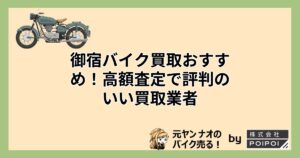 名義変更を正しく行えていなかったりすると税金がいつまでたってもあなたのもとに請求されることになるかもしれません。そういったクレームやトラブルを考えるとヤフオクでバイクを売却するのは危険かもって理解してもらえたと思います。