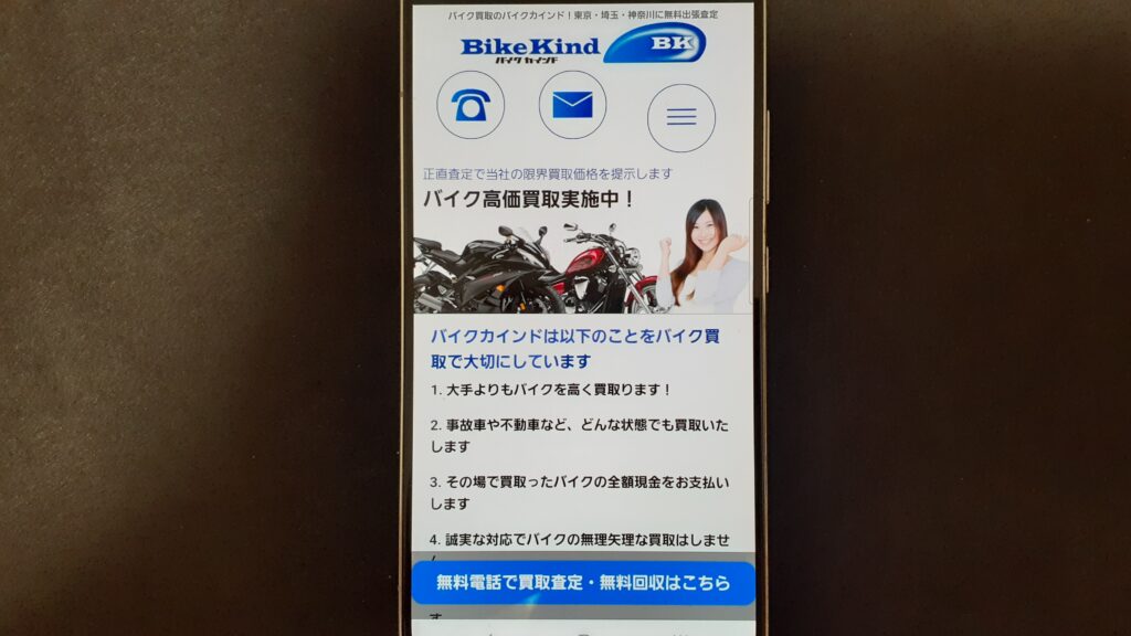 バイク買取のバイクカインドは埼玉県新座市を拠点に、東京・神奈川で無料出張査定を行う専門店です。