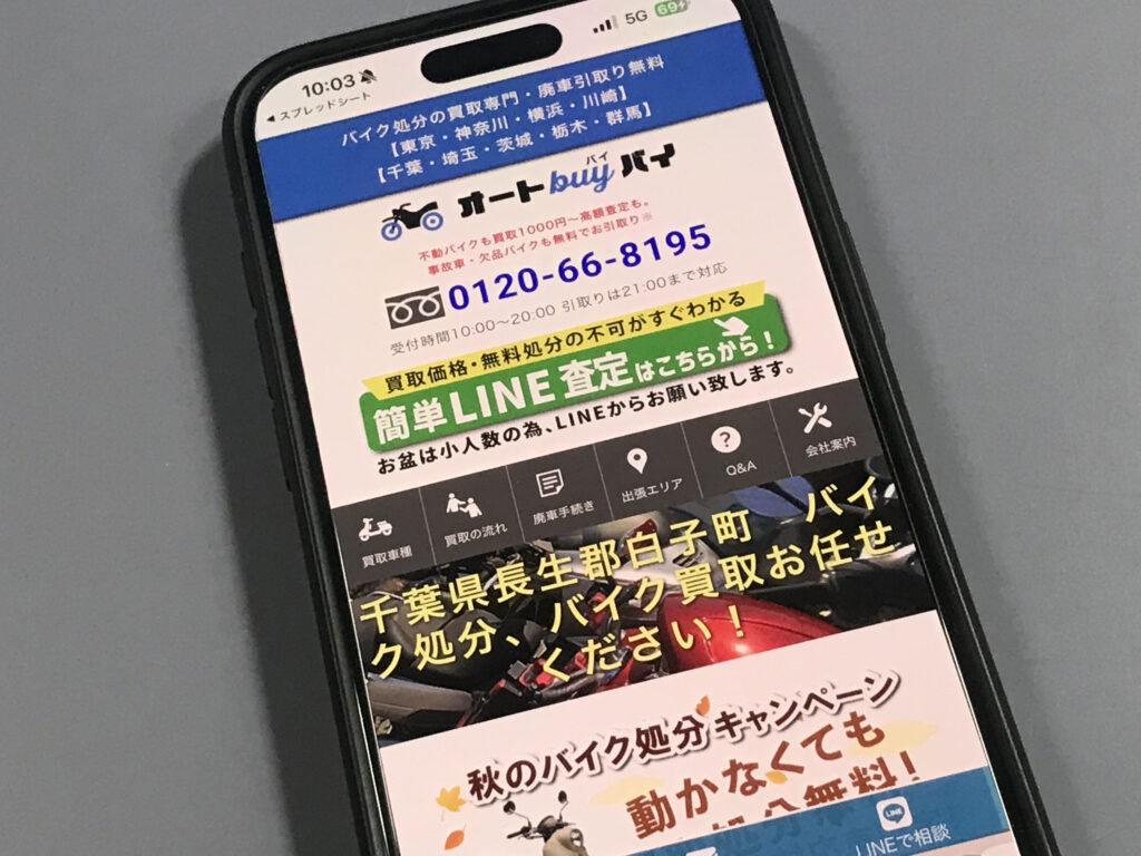 株式会社1plus1が運営するオートバイバイは、バイク処分と買取の専門業者として、東京・神奈川・横浜・川崎・千葉・埼玉・茨城・栃木・群馬を中心にサービスを展開しています。