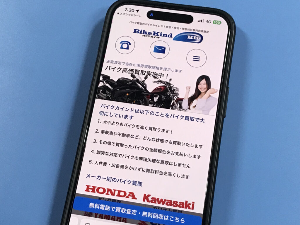 バイクカインドは埼玉県新座市に本社を置くバイク買取専門店で、東京・埼玉・神奈川を中心に無料出張査定を行っています。
