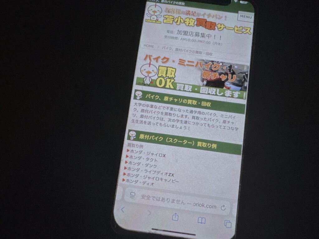 | 公式サイト | http://tomakomai.kaitoriok.com/bike_kaitori.html |