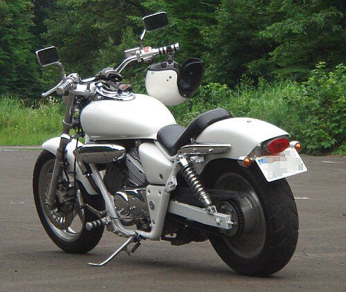 Vツインマグナ250は大柄な車体の風格を活かすカスタムが定番で、シーシーバー装着でチョッパースタイルもなかなか面白い手法。