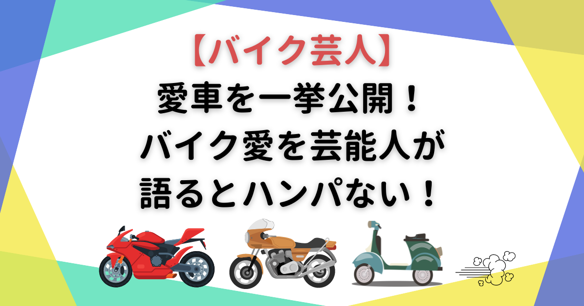 そこで、バイク芸人と呼ばれるほどのバイク好きな芸能人や、その愛車について詳しくご紹介します!