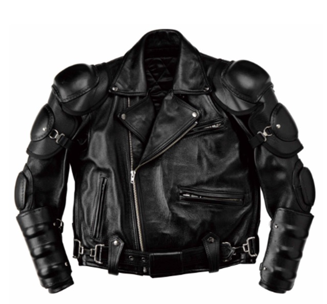 完全受注生産で19万円という価格もさることながら、全14箇所を革巻硬質プロテクターで保護した男の戦闘服。