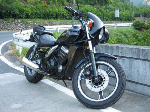 こちらはエリミネーター250をベースに、ブラック塗装仕上げのエンジンを始め、ビキニカウルとアンダーカウルを持つワルっぽさの強いマシンとして人気を博しました。