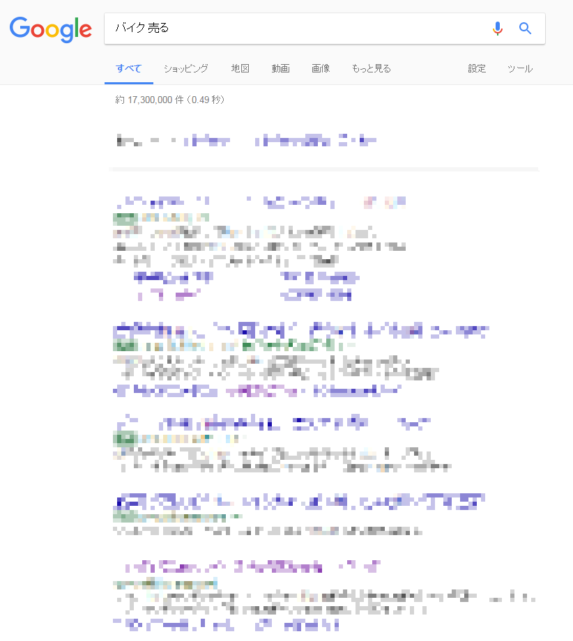 例えば、GOOGLEで「バイク 売る」で検索してみると…