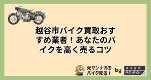 新越谷でおすすめの買取店は『バイク王』『バイクランド』『バイクワン』なのでこの3つの無料査定に申し込んでみるようにしましょう。