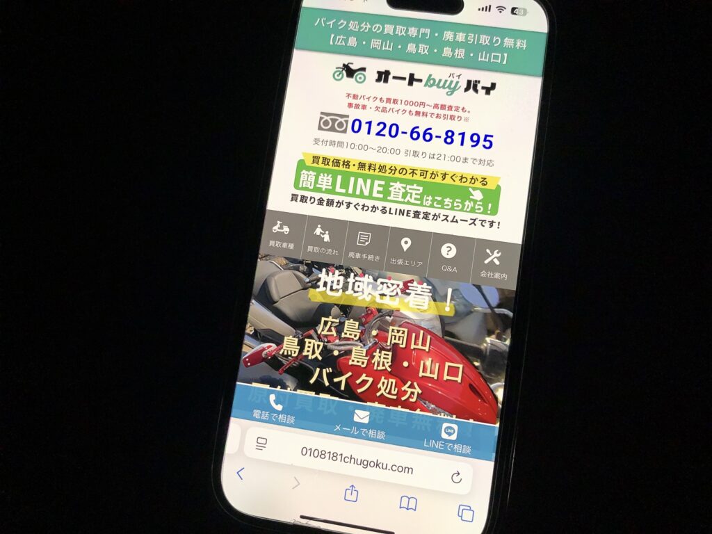 • 広島・岡山・鳥取・島根・山口エリアに対応し、出張買取サービスを通じて、どのような状態のバイクでも安心して処分できます。