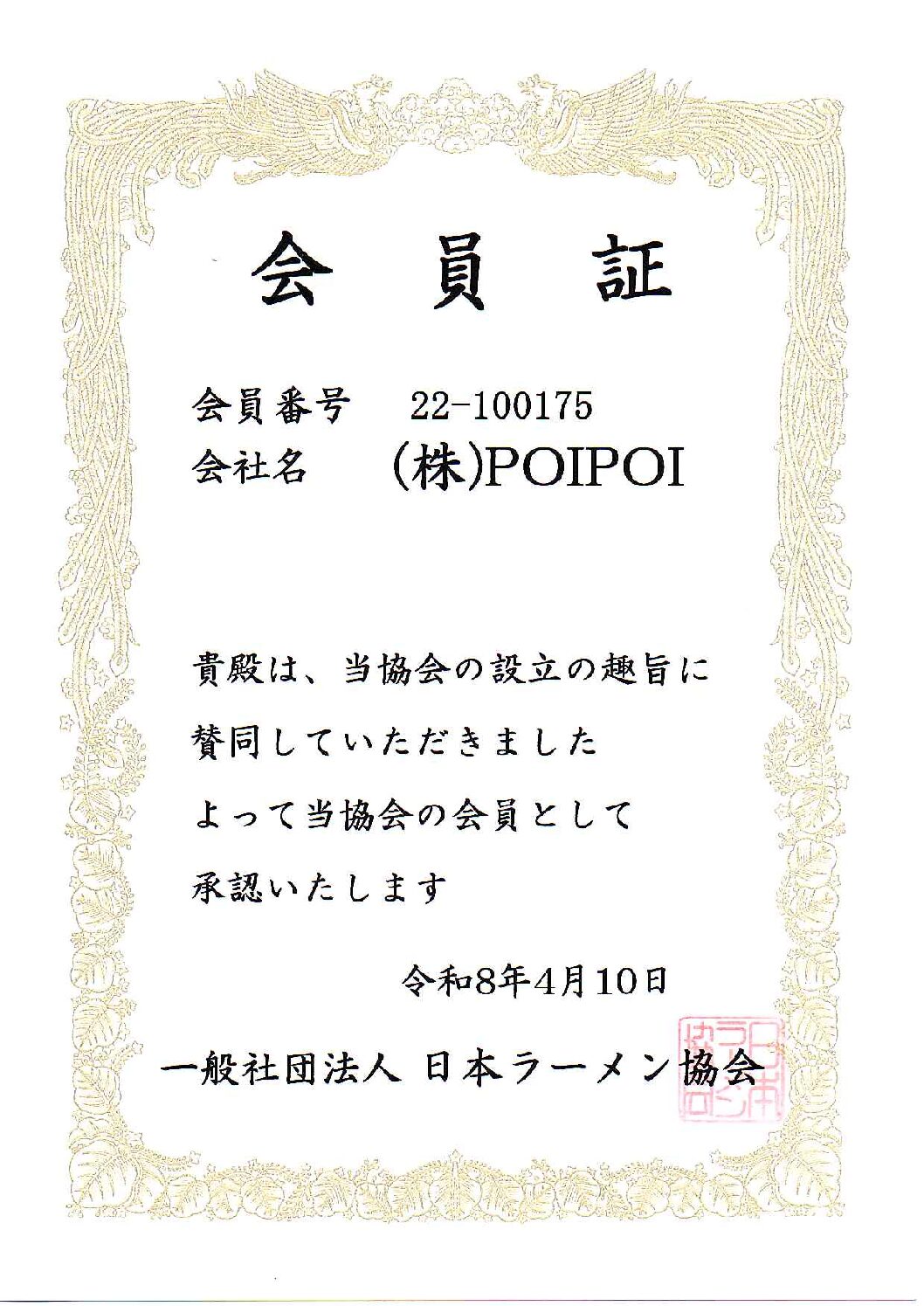 一般社団法人 日本ラーメン協会賛助会員になりました 2026 4/28 おしらせ 2026年4月28日 目次一般社団法人 日本ラーメン協会賛助会員として認定されました 弊社は一般社団法人 日本ラーメン協会の趣旨に賛同し、認定されました。 今後も、ラーメン文化のさらなる発展と普及に寄与し、事業を通して推進してまいります。 おしらせ URLをコピーしました! URLをコピーしました!